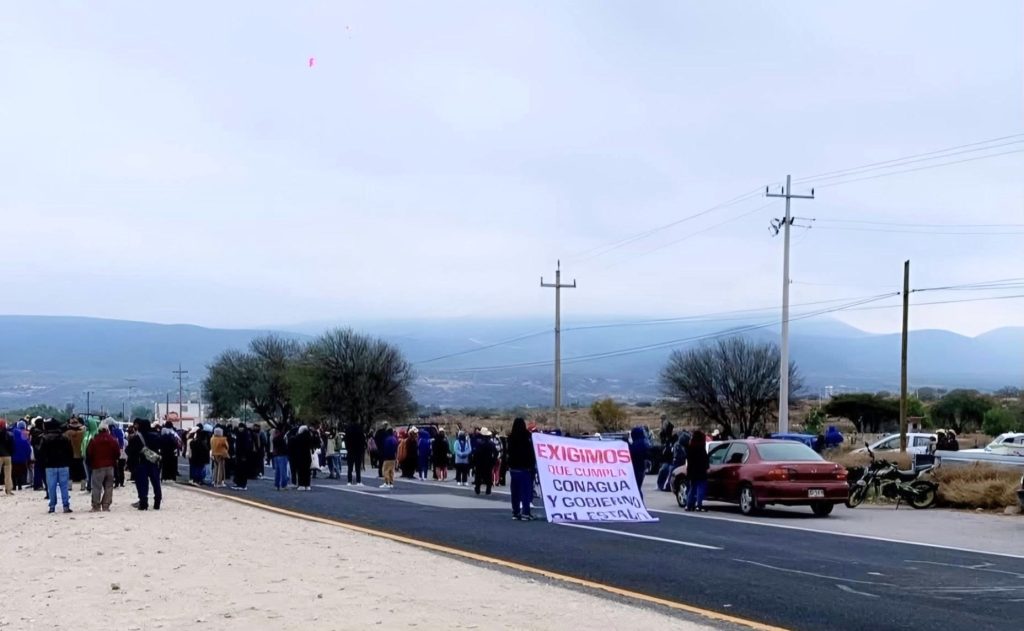 «Exigimos que nos cumpla la Comisión Nacional del Agua (Conagua) y el gobierno de Hidalgo», sus demandas fueron plasmadas en lonas que exhibieron en vehículos que atravesaron en la cinta asfáltica, donde quedaron varadas algunas unidades de transporte público de carga y pasajeros.