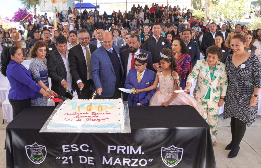 Manuel Castellanos. Villa de Tezontepec- El secretario de Educación Natividad Castrejón Valdez, presidió la celebración del Centenario de la Escuela Primaria General “21 de Marzo”, a la que acudieron estudiantes, exalumnos, docentes y padres de familia para conmemorar la labor educativa en favor de la niñez hidalguense.