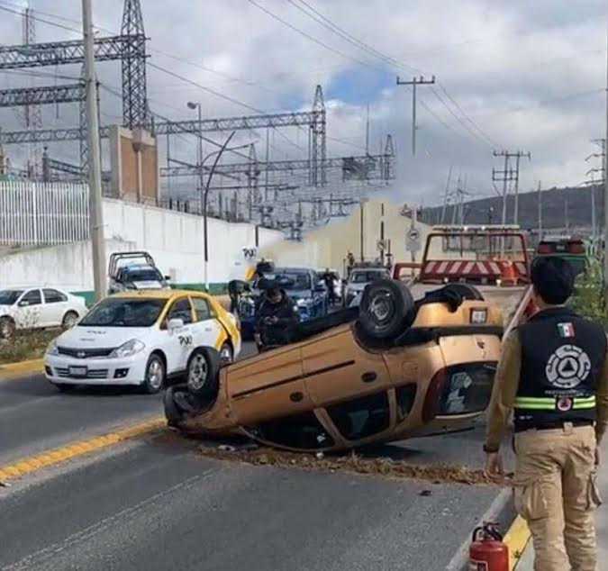 Juan Manuel Pérez. Mineral de la Reforma.- Debido al exceso de velocidad con que manejaba, un conductor ocasionó que chocara contra un poste de energía eléctrica para terminar volcado llantas arriba a un costado del fraccionamiento San Fernando.