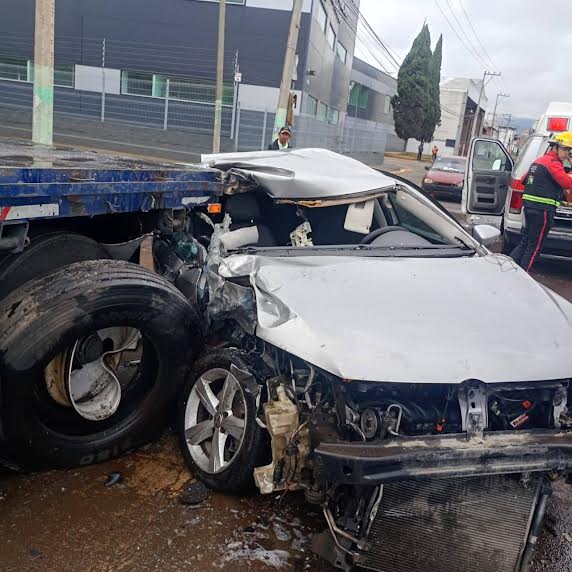 Juan Manuel Pérez. Tulancingo de Bravo.- Se registró un aparatoso accidente sobre la carretera federal México–Tuxpan, a la altura de la Estación de Bomberos, en el que un automóvil particular colisionó por alcance contra un camión tipo plataforma.