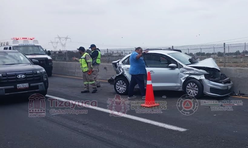 Juan Manuel Pérez. Tizayuca.- Una persona lesionada, dos más con crisis nerviosa y cuantiosos daños materiales dejó un choque múltiple suscitado sobre la autopista México-Pachuca, justamente a la altura de la gasolinera “Boing”.