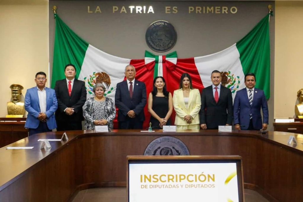 En el acto protocolario, los representantes de Nueva Alianza, que serán cuatro, comenzaron con la firma del libro, encabezados por la representante del distrito 18, Mónica Reyes Martínez, quien será la coordinadora de la bancada turquesa.