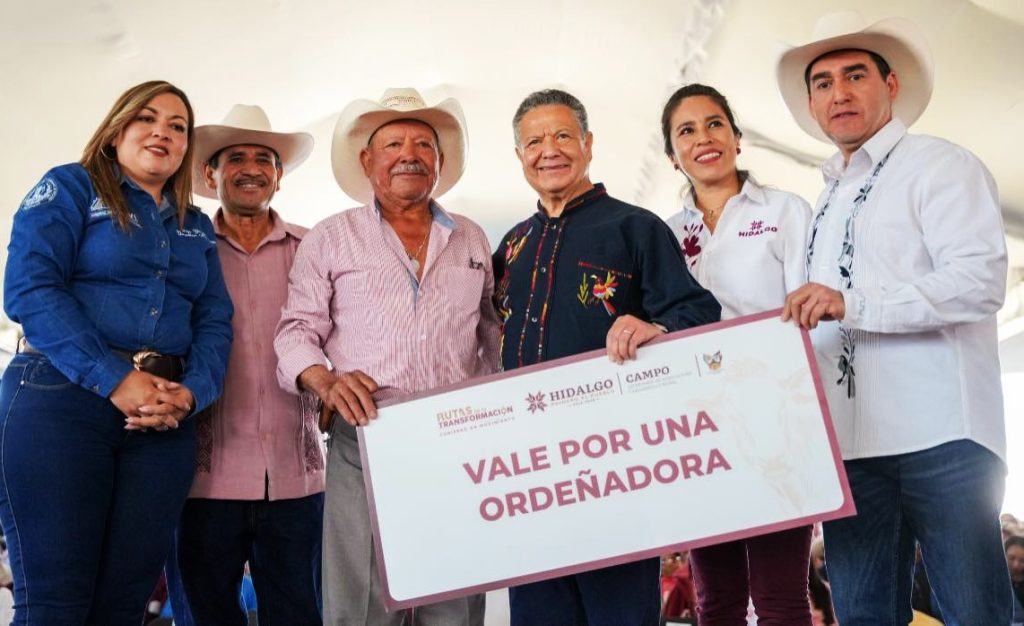 Como parte del impulso al desarrollo económico, el gobernador, junto a Carlos Henkel Escorza, secretario de Desarrollo Económico, entregó de manera simbólica los programas “Transformando con la Juventud” e “Hidalgo con Potencial”, gracias a una inversión conjunta de 72 mil 500 pesos; y otorgó el distintivo “Hecho en México” a Belem Moreno Solis, productora de jugo de maguey; una iniciativa del Gobierno de México para fortalecer la industria nacional y promover el consumo de productos y servicios elaborados en el país.