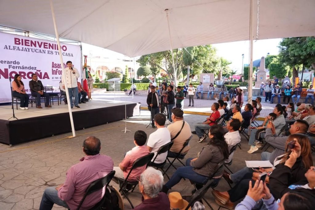 Arturo G. Alanis. Alfajayucan.- Con una hora de retraso y apenas 80 personas transcurrió la visita del senador Gerardo Fernández Noroña, en la Plaza Cuauhtémoc, con pretexto de sus Asambleas Informativas a ras de tierra; fue recibido por el presidente municipal también el ex petista, Julio Agustín Cruz Tovar, que suspendió actividades en el ayuntamiento.