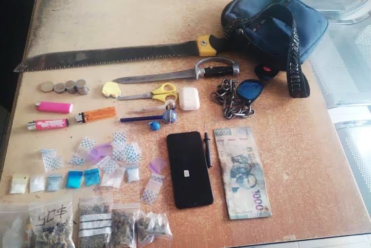 Ante esta situación, los agentes intervinieron a P. L. L., de 25 años, y E. G. R. P., de 19 años, a quienes se les realizó una inspección física y les encontraron siete dosis de cristal, cuatro bolsas de marihuana, dinero en efectivo, un machete y un cuchillo.