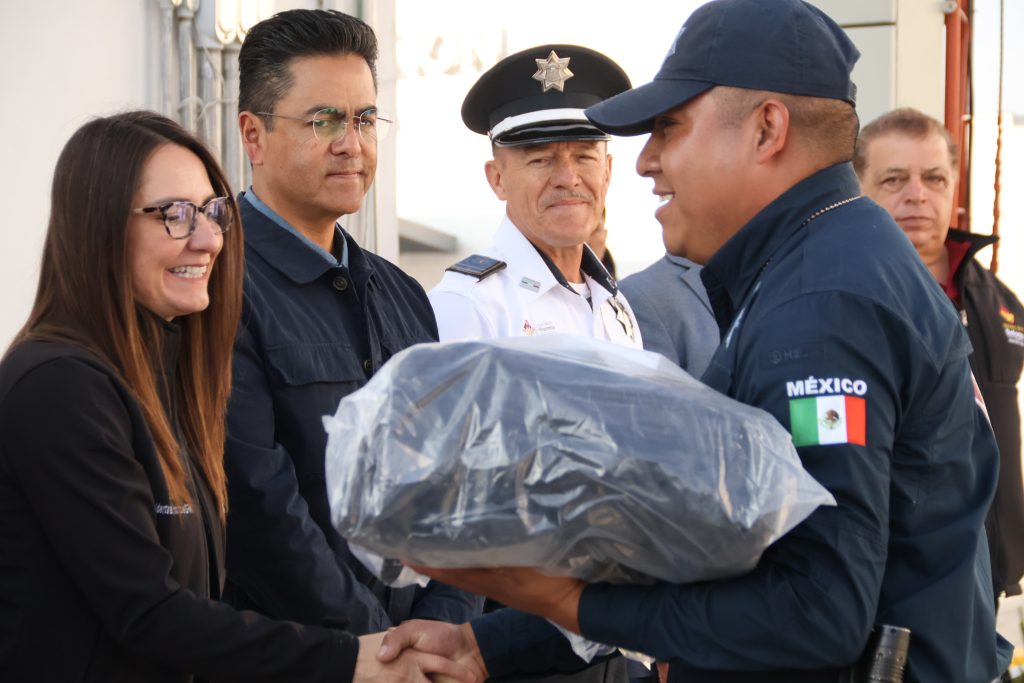 El titular de la Secretaría de Seguridad Ciudadana, Jorge Alberto Trejo Terrazas, informó que se entregaron fornituras, chalecos tácticos, cámaras de solapa, mochilas tácticas, chalecos balísticos, cascos balísticos, goggles tácticos, juegos de coderas y de rodilleras, candados de mano, bastón policial PR–24 y lámparas de mano, para 280 elementos.