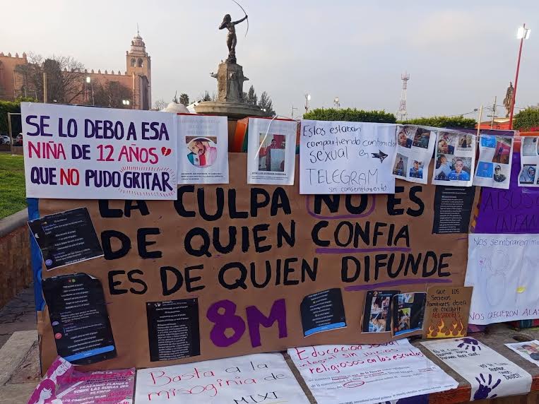 Los carteles fueron colocados por personas que participaron en la marcha 8M. Así que transeúntes dieron cuenta de personas señaladas por compartir material íntimo de mujeres, en grupos de diferentes redes sociales, refiriéndose principalmente a Telegram.