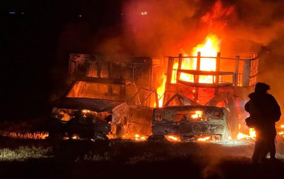 Posteriormente, debido a la gasolina que era almacenada en los bidones y estos a su vez en las camionetas, quedó un incendio de tal magnitud que las llamas alcanzaron a verse a la distancia y en el lugar todo ardió hasta ser reducido a cenizas.