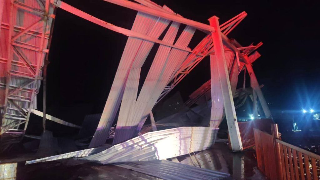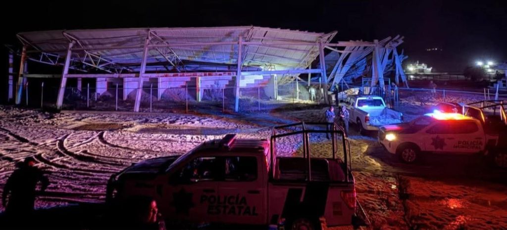 Zapotlán de Juárez.-Cuatro lesionados y dos caballos atrapados dejó el desplome de la techumbre del lienzo charro de San Pedro Huaquilpan debido a la fuerte tirmenta axmcompalada de granizo que azotó esta comunidad.