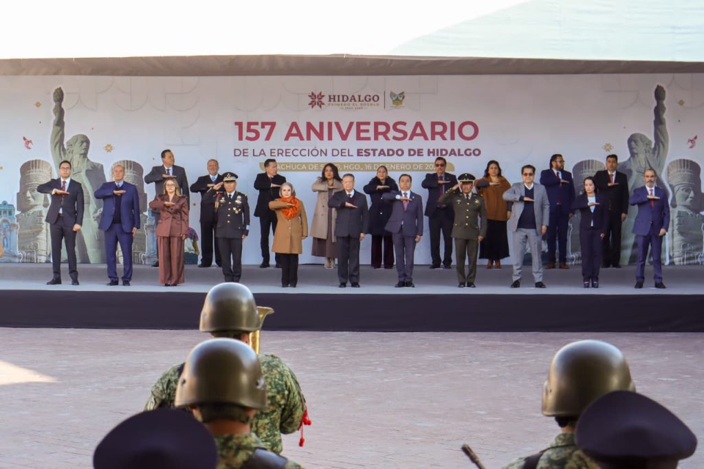 Jocelyn Andrade.- Hidalgo alcanzó 157 años como estado libre y soberano este 16 de enero, fecha que marcó un acto cívico en Plaza Juárez, en Pachuca y la conmemoración reunió a autoridades estatales para recordar la erección de la entidad ocurrida en 1869 y reafirmar su vigencia dentro del marco federal