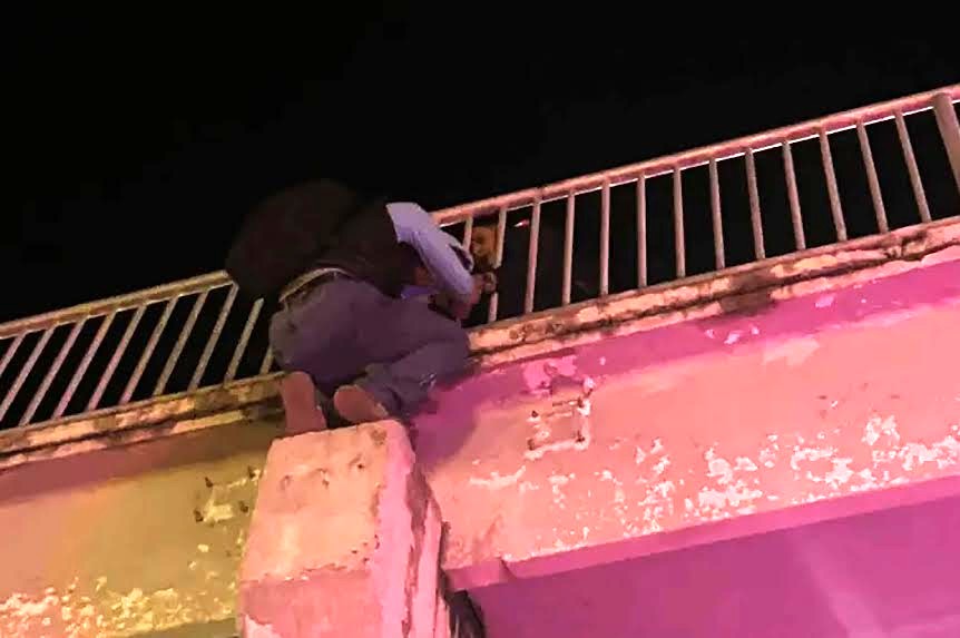 Juan Manuel Pérez.- Un hombre intentó quitarse la vida en la parte alta del puente peatonal ubicado en la Avenida Madero, justamente frente al Hospital General, pero por fortuna llegó la policía para persuadirlo de su decisión.