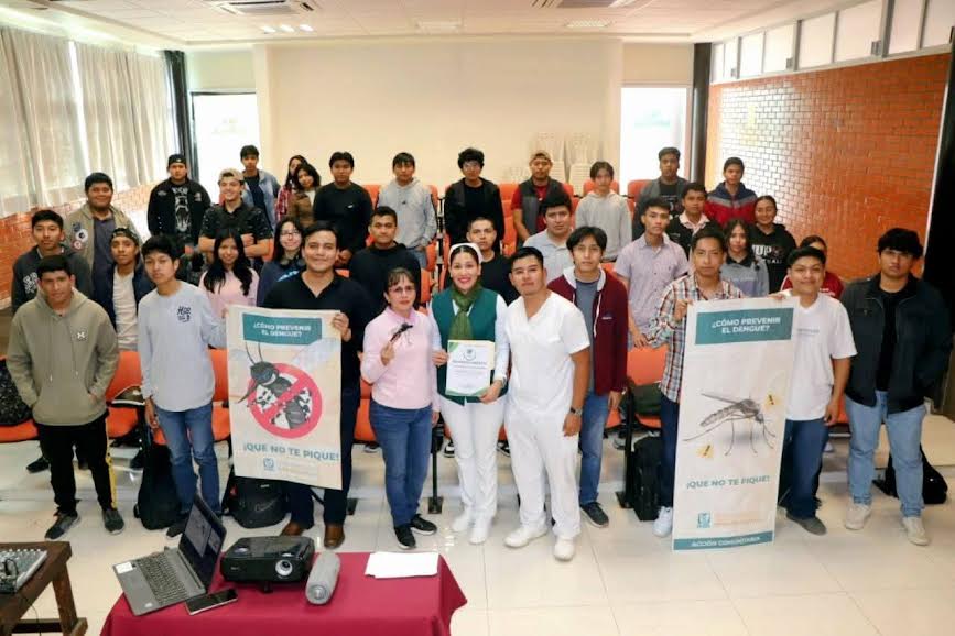 Ángel Bautista. Huejutla de Reyes.- Ante el aumento de casos de dengue en la región, personal de la Unidad IMSS-Bienestar, perteneciente a la colonia Parque de Poblamiento, llevó a cabo una jornada informativa en la Universidad Politécnica de Huejutla, dirigida a estudiantes y personal académico, con el propósito de fomentar la prevención y el autocuidado.