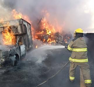 Juan Manuel Pérez. Tula de Allende.- Intensa movilización de cuerpos de emergencia se registró en la autopista Arco Norte, debido al incendio de tres vehículos.