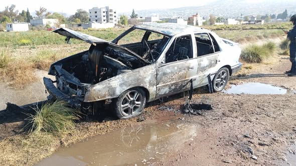 Posteriormente se inició una persecución que llevó a los responsables del hurto a incendiar el automóvil para evitar ser detenidos en un camino de terracería cercano a la Ex Hacienda de Exquitlán.