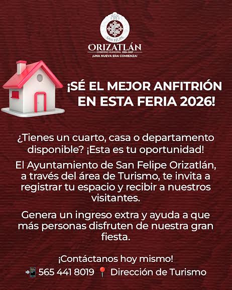 A través de esta estrategia coordinada por la Dirección de Turismo, se convoca a las y los habitantes de San Felipe Orizatlán que cuenten con espacios desocupados, como habitaciones, viviendas o departamentos, a integrarse a un registro oficial de renta temporal durante las festividades.
