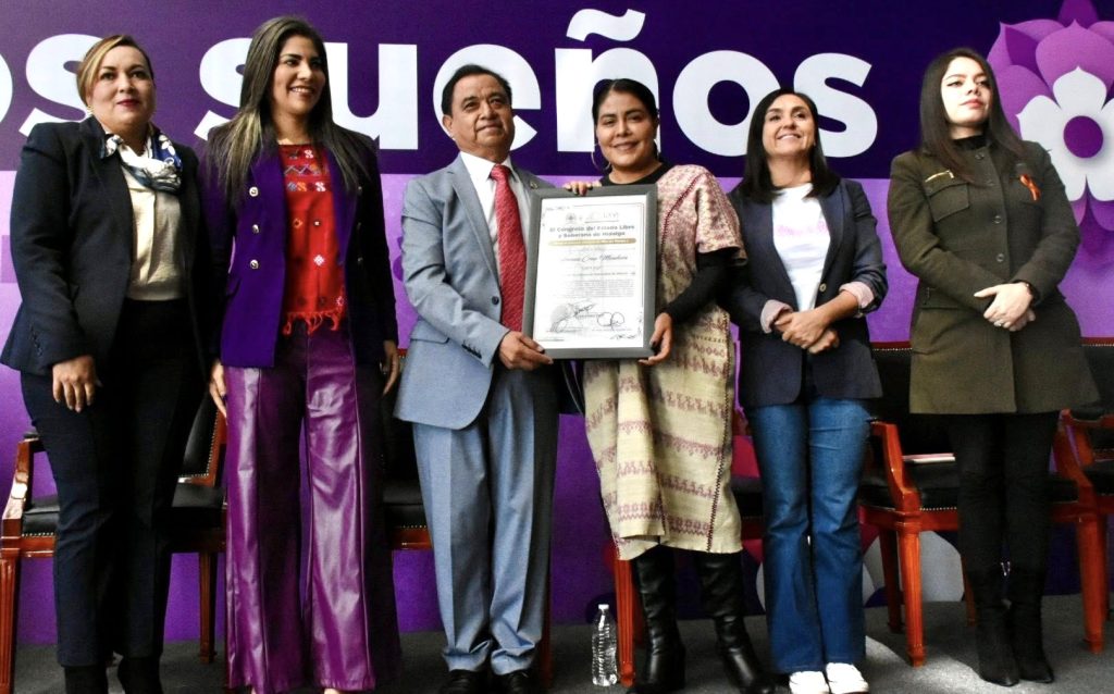 Erick Morales.- En una ceremonia conmemorativa por el Día Naranja, el Congreso local otorgó la presea “La Mina del Tiempo” a Eufrosina Cruz Mendoza, en reconocimiento a su trayectoria pública y a su labor en favor de los derechos de niñas y mujeres indígenas.