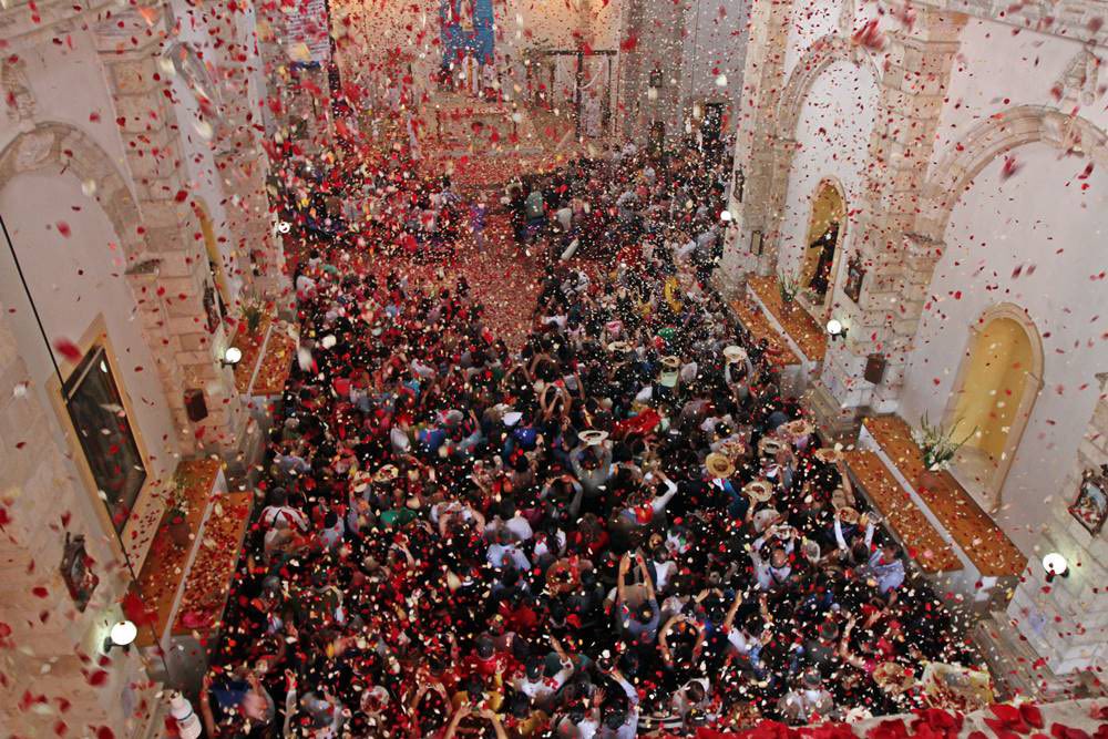 Jocelyn Andrade. Mineral del Chico.- La lluvia de pétalos en la iglesia donde decenas de personas participaron en esta actividad, que formó parte de la Semana Santa, desde las primeras horas de este domingo.