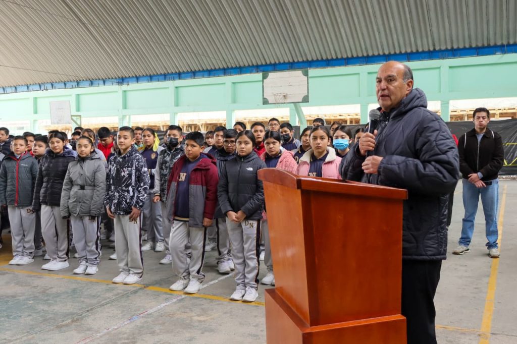 Durante el Lunes Cívico, explicó que el proyecto consistió en demoler un módulo antiguo de dos niveles para construir una moderna estructura de tres niveles, cuya conclusión está prevista para marzo próximo.