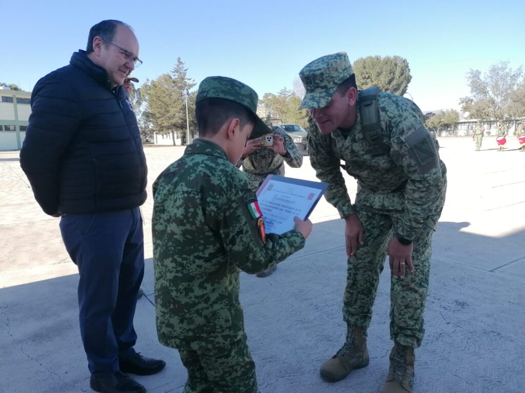 A bordo de un vehículo blindado, el menor acompañado de sus padres y miembros de la Sedena arribó a las instalaciones del Batallón de Infantería, donde lo recibió el coronel de Estado Mayor, Binick Balam Castillo, la máxima autoridad militar en la región.