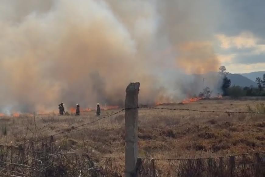 El tercero de los incendios arrasó con un aproximado de ocho hectáreas de pastizales, en campos de la comunidad de El Palomo, donde también señalaron que habitantes hacían uso de juegos pirotécnicos y provocaron fuego.