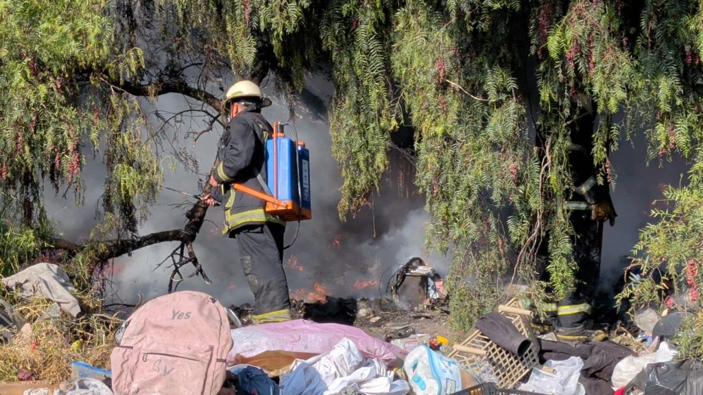 Juan Manuel Pérez.- Un refugio improvisado utilizado por personas en situación de calle se quemó durante un incendio de pastizales, suscitado en el bulevar Nuevo Hidalgo, justo detrás de Plaza Vértice.