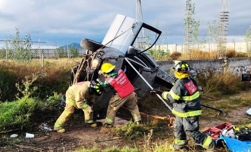 Al lugar acudieron Bomberos Voluntarios del Estado de Hidalgo con siete elementos, quienes trabajaron arduamente para liberar a las víctimas utilizando las quijadas de la vida y diversas herramientas especializadas.