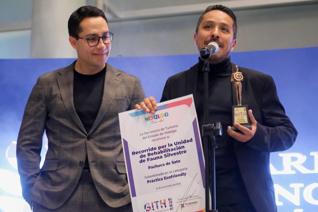 Jesús Castillo.- La Unidad de Rehabilitación de Fauna Silvestre fue obtuvo el reconocimiento “Práctica Ecofriendly” durante los Galardones a la Innovación Turística de la Secretaría de Turismo del estado de Hidalgo, otorgado al proyecto Recorridos en la Unidad de Rehabilitación de Fauna silvestre, iniciativa que se ha convertido en referente regional por su labor educativa y de conservación