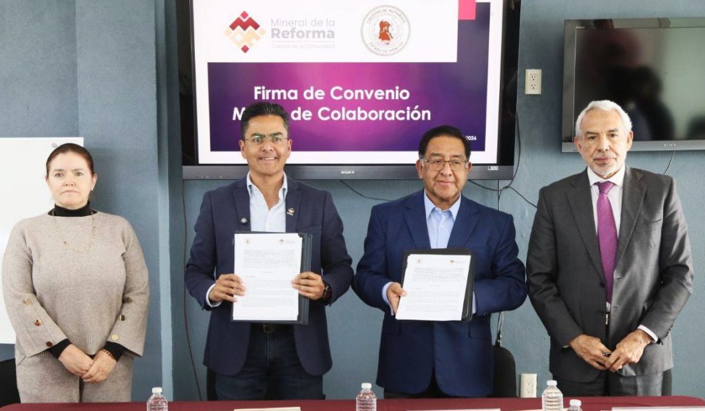 Jesús Castillo. Mineral de la Reforma.- Iniciará la regularización de fraccionamientos sin municipalizar, para ello el ayuntamiento firmó un convenio con el Colegio de Notarios del Estado de Hidalgo A. C., para establecer bases de cooperación, coordinación, mecanismos y vinculación, para realizar acciones y estrategias en materia de opinión, asesoría y consulta en todo lo relativo a la Función Notarial.