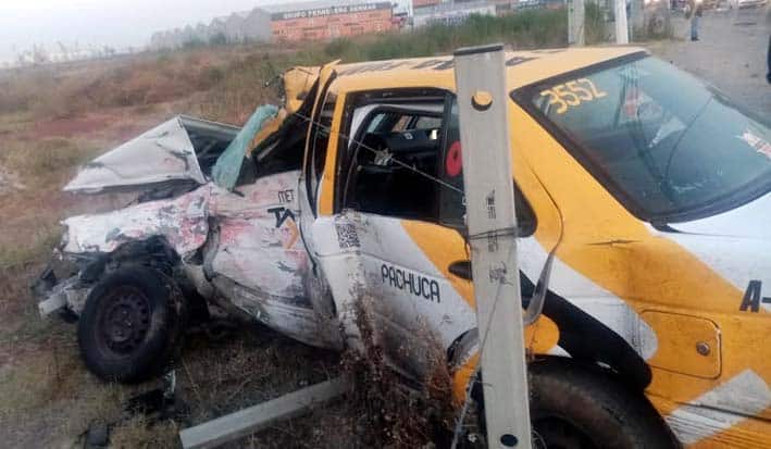 Juan Manuel Pérez.- Un taxi metropolitano adscrito al municipio de Pachuca protagonizó un aparatoso accidente sobre la carretera federal México-Pachuca a la altura del municipio de Tecamac en estado de México.