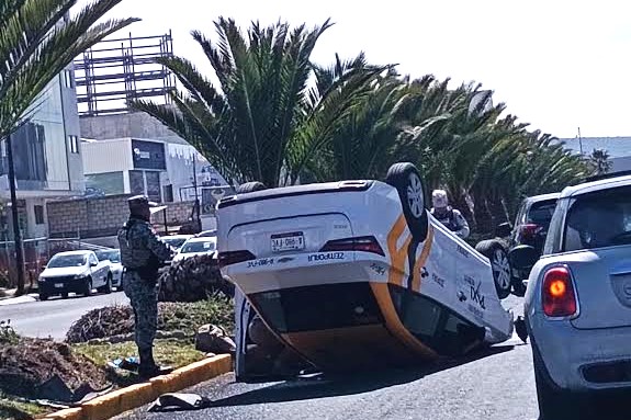 Juan Manuel Pérez.- Un automóvil de alquiler (taxi) volcó en la Zona Plateada, una de las áreas con mayor flujo vehicular en la capital hidalguense.