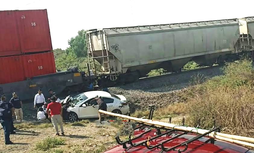 Juan Manuel Pérez. Nopal de Villagrán.-Al tratar de ganarle el paso al tren, un vehículo compacto fue impactado por la locomotora con resultado de dos heridos.