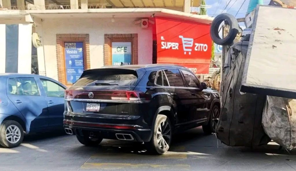 En la imagen que se dio a conocer en las plataformas digitales se observa una unidad color negro estacionada sobre un paso peatonal, frente a las tiendas Neto.