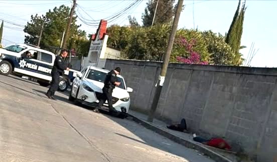 En el interior de un automóvil Mazda blanco se encontraba un cuerpo y dos más en la banqueta, cuando llegaron sujetos desconocidos que, sin decir nada, comenzaron a disparar para quitarles la vida.