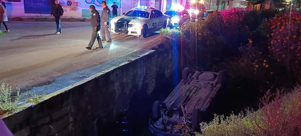 Juan Manuel Pérez.- Un aparatoso accidente se suscitó sobre la avenida Federalismo, en la colonia Parque de Poblamiento, donde un vehículo particular volcó y terminó cayendo a un canal de desagüe.