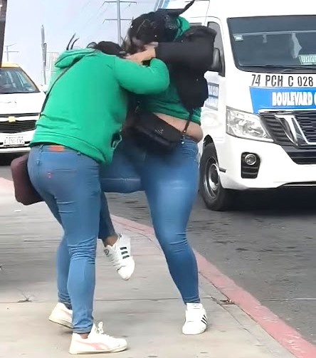 El video muestra a las dos femeninas resolviendo sus diferencias a golpes, sin que nadie trate de evitar el conflicto, a pesar de la visibilidad de la escena y la presencia de testigos.