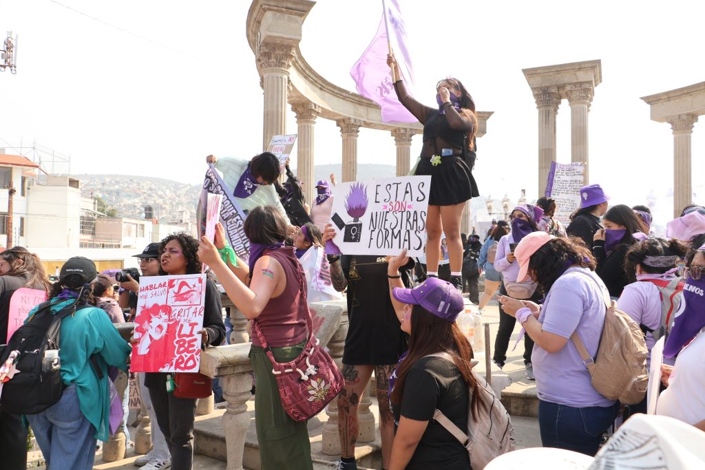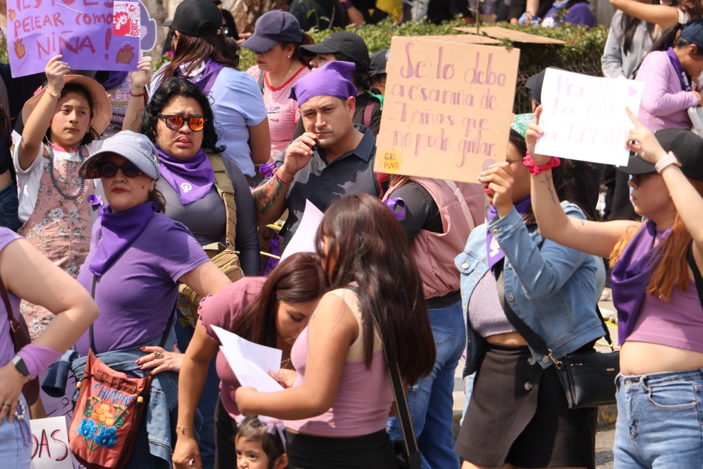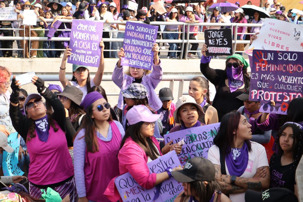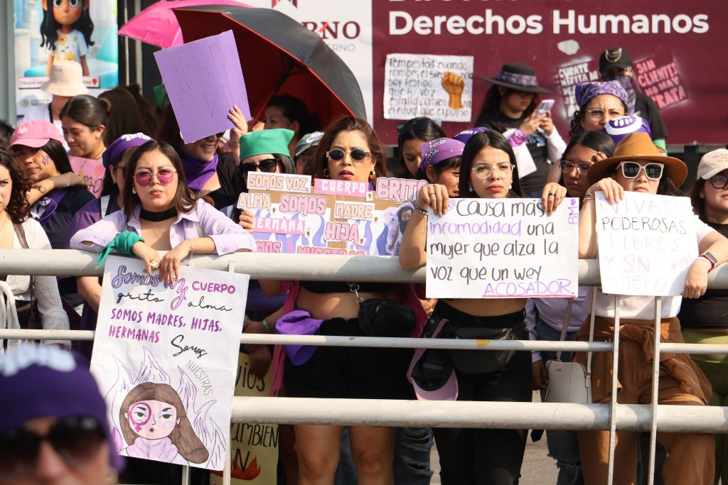 Jocelyn Andrade/Manuel Castellanos/Ángel Bautista.- Con nueva ruta y punto de concentración que evadió la Plaza Juárez y un protegido palacio de gobierno con vallas metálicas se efectuó la marcha por el Día Internacional de la Mujer, con saldo blanco y la exigencia de poner fin a la violencia de género, porque se mantiene la violencia contra las mujeres, la intrafamiliar, avanzan los feminicidios y las oportunidades continúan desiguales.
