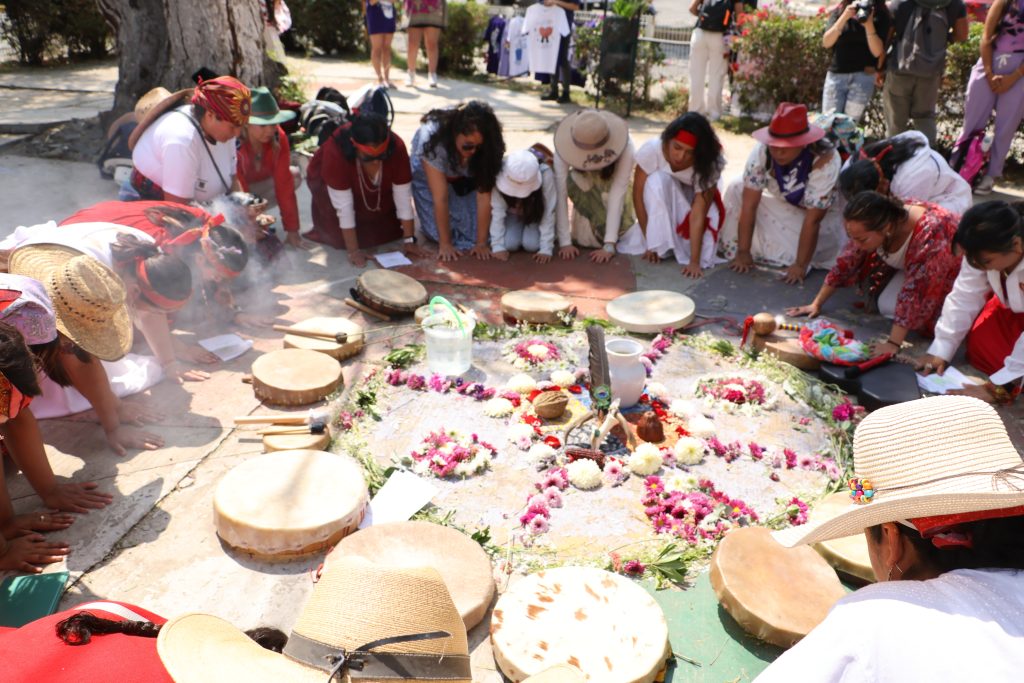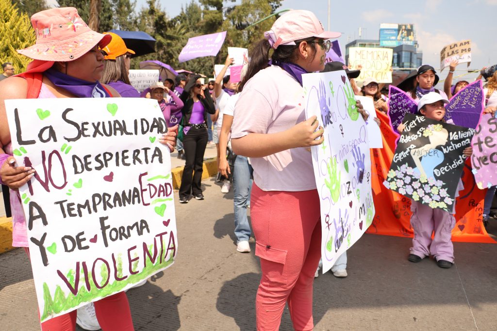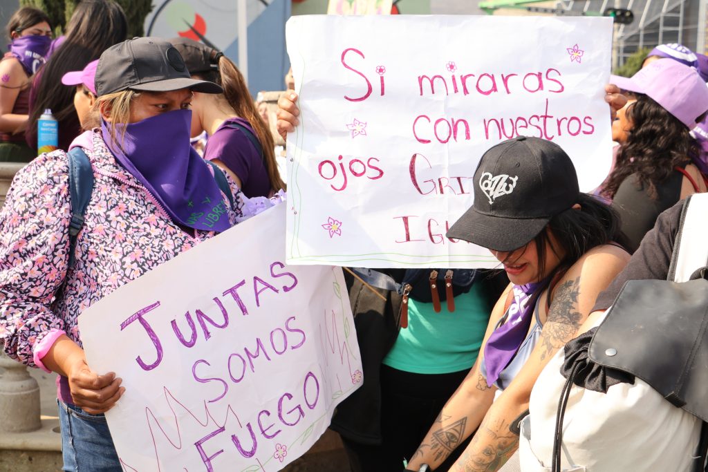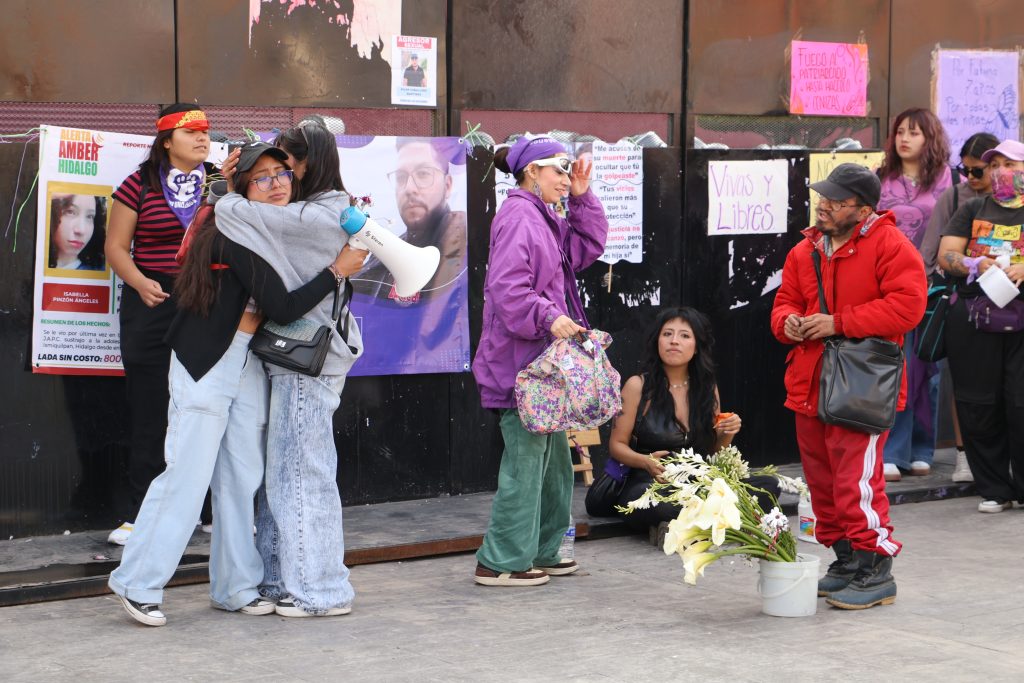 A las 14:00 horas se registró una concentración en el Parque Hidalgo con presencia de madres, niñas y mujeres cuidadoras y en el lugar se elaboraron carteles y consignas que después formaron parte de la movilización; tras la reunión del contingente, el grupo inició traslado hacia el Monumento a la Mujer.