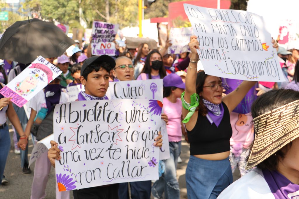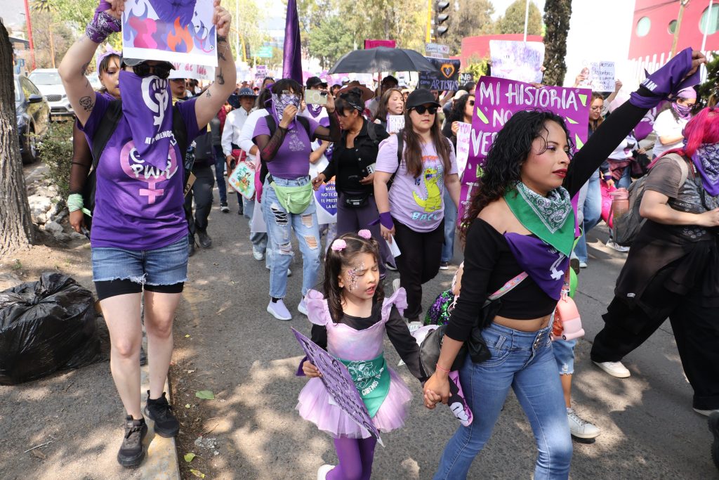 La movilización avanzó por vialidades de la capital con presencia de contingentes provenientes de varios colectivos, puesto de las primeras actividades que comenzaron a las 10:30 horas en el Monumento a la Mujer, situado en la glorieta de Insurgentes.