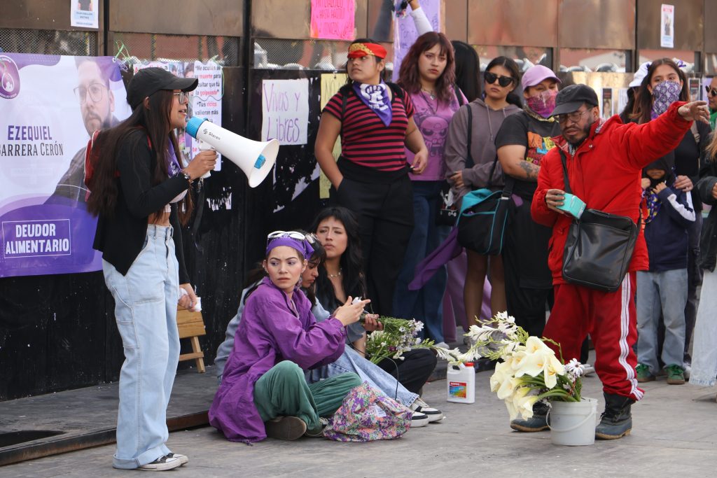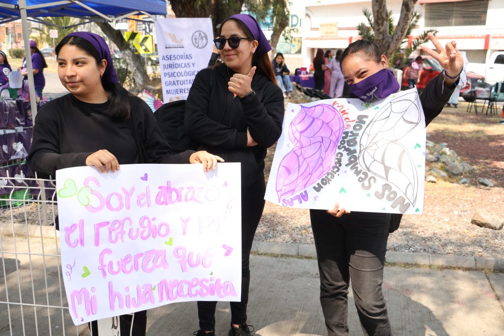 En ese punto se instalaron bazares, espacios de denuncias y dinámicas relacionadas con los derechos de las mujeres. Integrantes de colectivos y activistas participaron en la organización de la jornada.