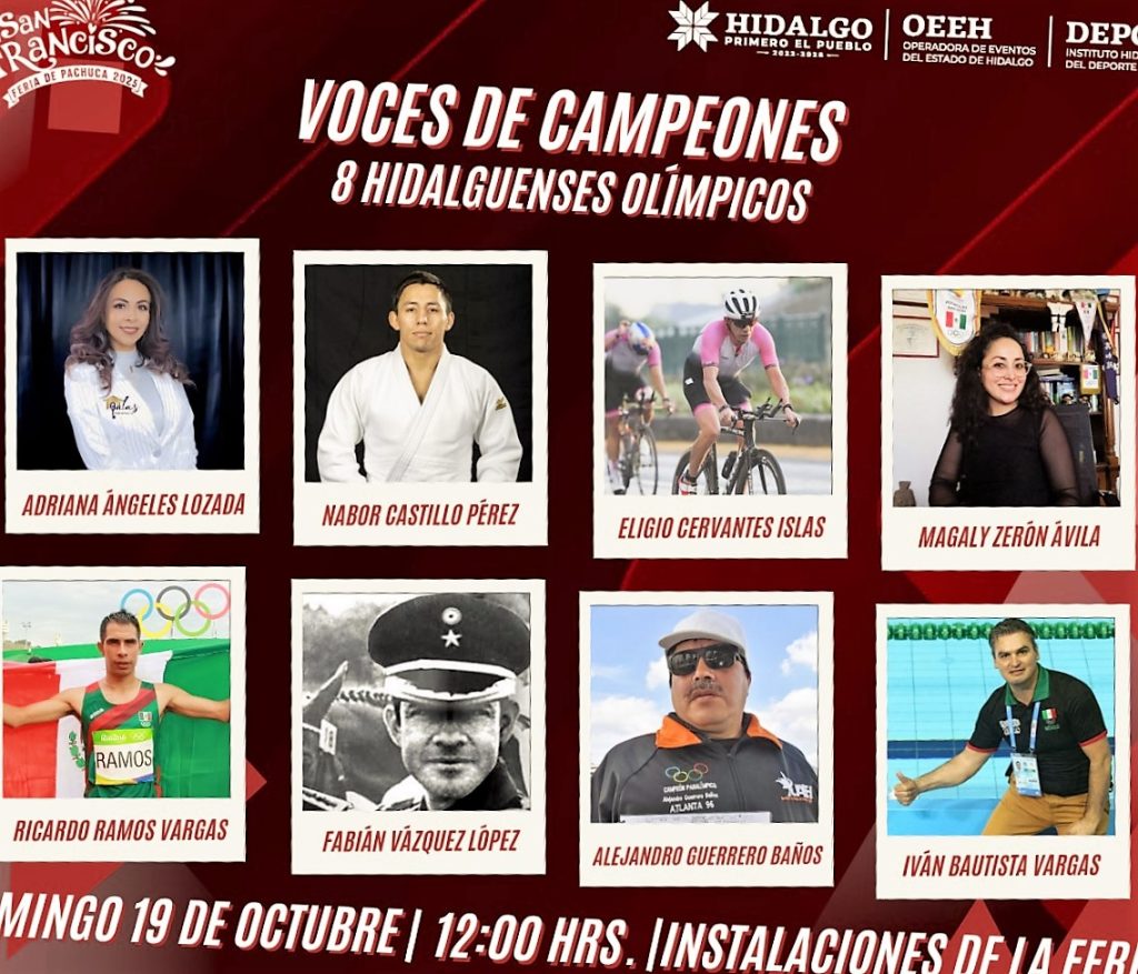 La Feria de San Francisco Pachuca Hidalgo 2025 integra en su programa un espacio dedicado al deporte, a través del conversatorio “Voces de Campeones”, el cual reunirá a destacados atletas hidalguenses que han representado a México en los Juegos Olímpicos.